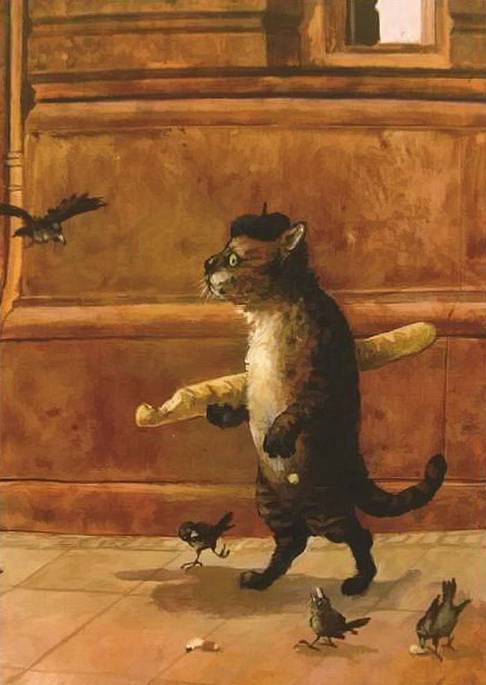 Коты Петербурга очень перекликаются. Симпатично, особенно кот с багетом.