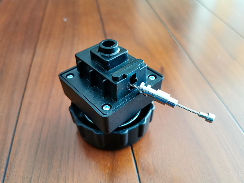 Собрать велотренажер - дело нехитрое, даже я с моими кривыми руками с этой задачей справляюсь без проблем. Собираю. Монтирую устройство регулировки усилия. Оно - простое как две копейки. В полностью ослабленном положении тросика механизм находится на максимальном усилии. Чтобы снизить усилие, нужно натянуть тросик.