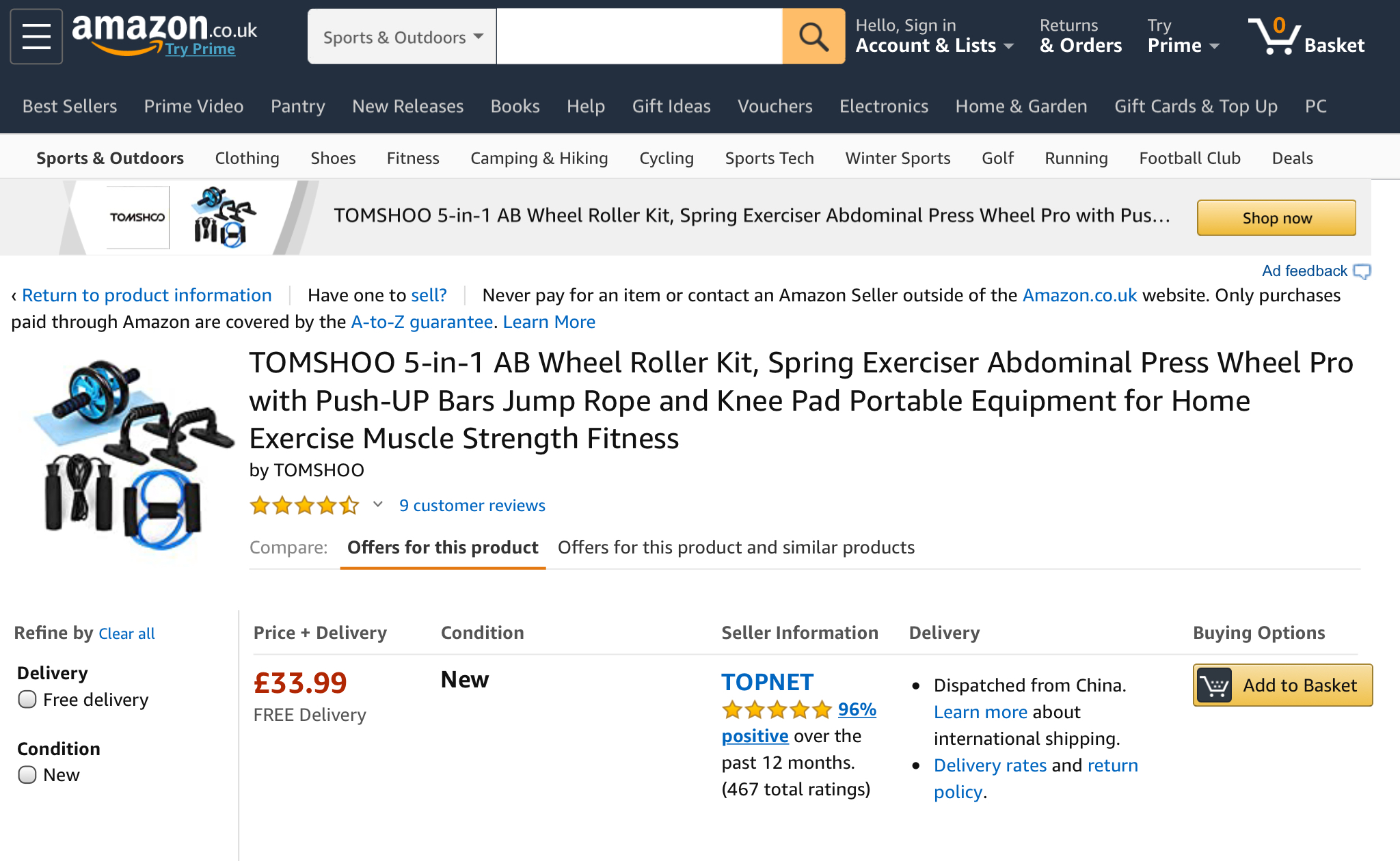 Например, случайный товар из английской площадки. На скриншоте показаны предложения товара и информация о продавце.