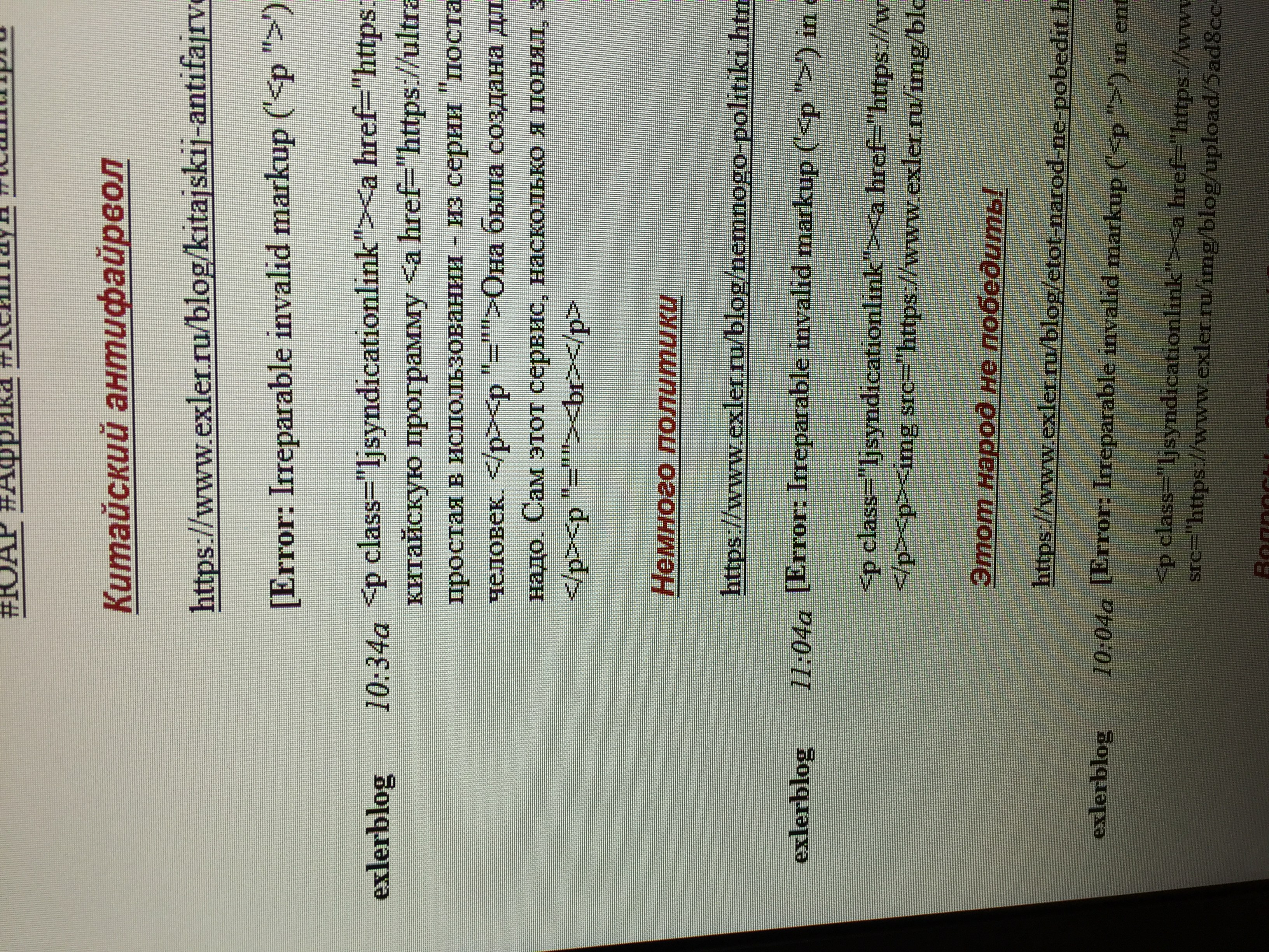 Я про exlerblog в жж. Он показывает irreparable invalid markup. Где в html таг пропущен.