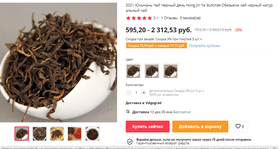 Этап покупки чая на алиэкспрессе я уже прошел. Несколько лет назад его там вроде как запретили, как и все прочие продукты. Так что сейчас это и сомнительно, и не очень предсказуемо.
