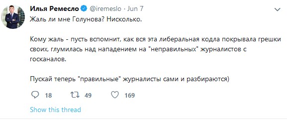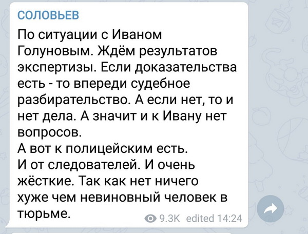 И тот же Соловьев... Правильно, на следующий день. Теперь у него, как обычно, жесткие вопросы.