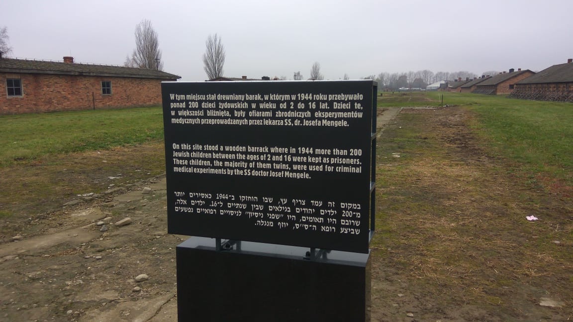 На месте одного из бараков стоит мемориальная доска: "здесь доктор Менгеле орудовал".