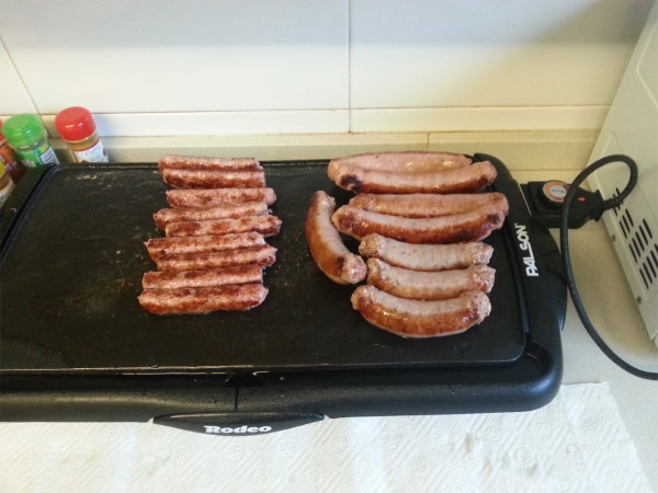 Какой же Октоберфест без колбасок? Купил вчера на пробу три вида - тут в магазинах их полно. Пожарил на планче - аж полчаса возился. Пожарились нормально. Но колбаски оказались паршивые. Ни разу еще тут, в Испании, нормальных колбасок не встречал. Придется, видать, за ними ехать в Германию. А что, тоже повод...