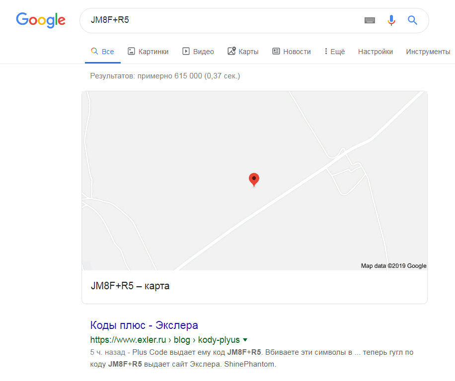теперь гугл по коду JM8F+R5 выдает сайт Экслера