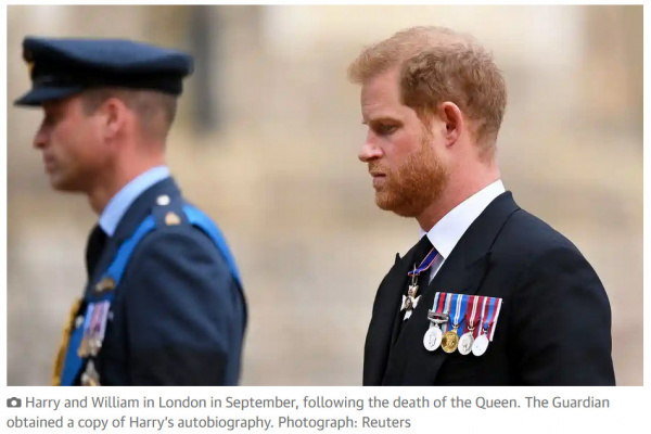 Издание The Guardian получило экземпляр автобиографической книжки принца Гарри "Spare" (Запасной). В книге, судя по всему, Гарри подробно рассказывает о том, какие же редкостные говнюки вся эта королевская семья, и как там его все обижали, унижали, оскорбляли и били - за его светлое чувство к лучшей женщине на Земле Меган Маркл, которую все ненавидят за то, что она - лучшая женщина на Земле.
