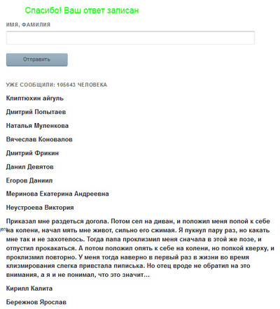 Также никакой e-mail, как всегда делается в нормальных и ответственных голосовалках, не вводится и не проверяется. Более того, скорбный умом разработчик голосовалки даже размер строки не проверяет, в результате чего там появляются вот такие шедевры.