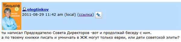 Про пять ошибок в двух строчках - я вообще молчу. Он явно не еврей и не дитя советской элиты. Те себе такого не позволяют.