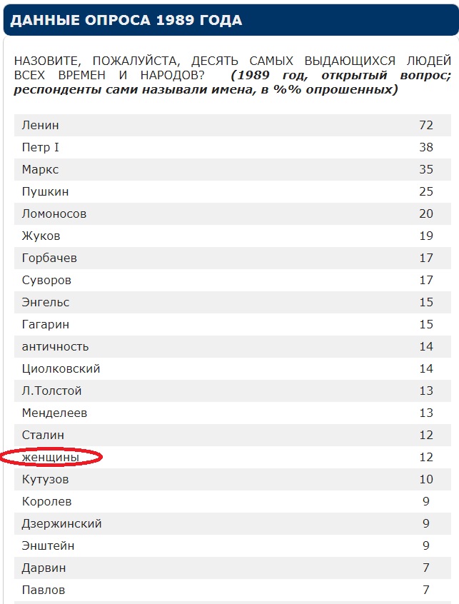 . У народа России не нашлось ни единой великой женщины во всем мире во всей истории,