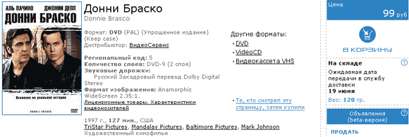Вот именно по этой причине я давно уже не покупаю наши двд. Проще и дешевле скачать из торрента (предварительно выбрав 5.1, dts, перевод и т.п.) и записать на болванку. Не вижу смысла платить лохотронщикам. А если хочется "Коллекционное издание" в красивой коробочке, на это есть Амазон. Там почему-то приставка "коллекционное" оправдывает свои деньги, вот ведь странность...