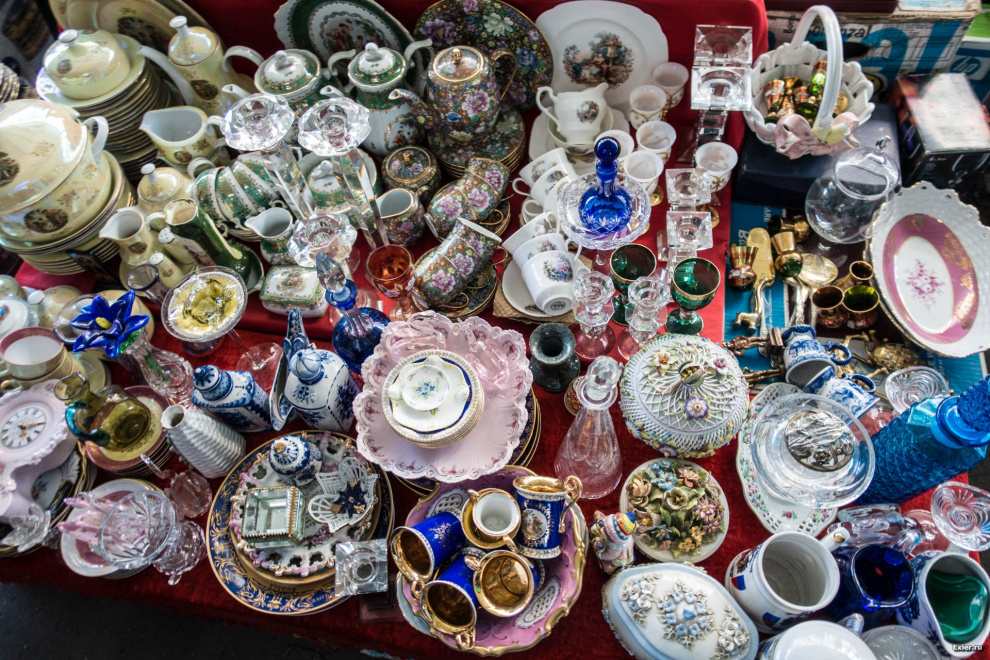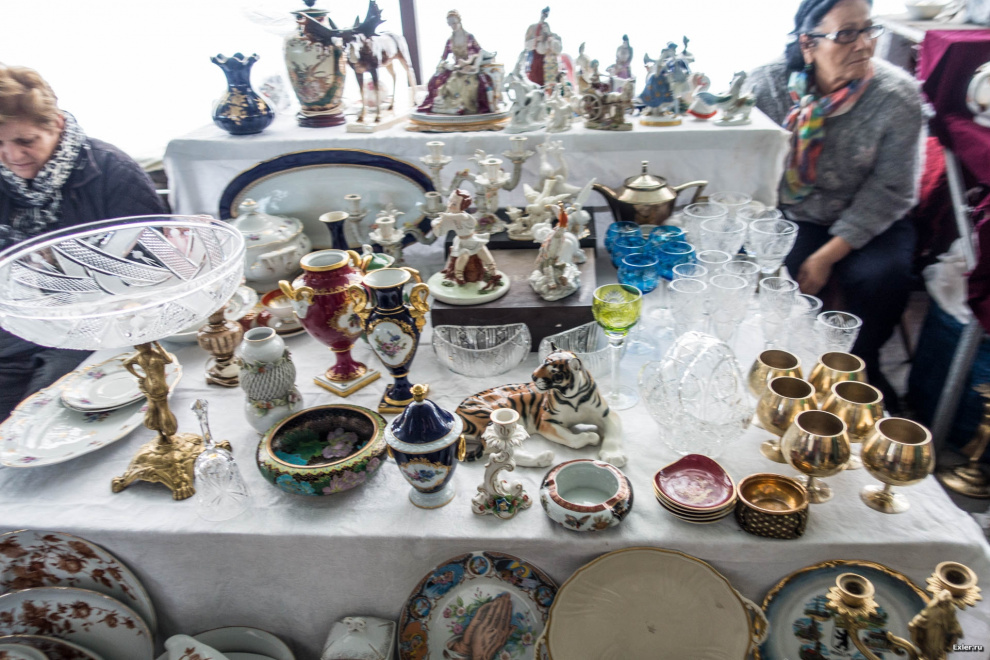 На ярмарке был целый здоровенный ангар со всякой колоритной посудой в стиле наших бабушек-дедушек. Некоторые сервизы были очень красивы, хотя я бы себе такой не взял: я люблю модерновый стиль во всем, а не ретро.