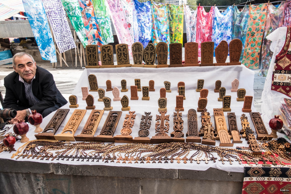 Правда, в Испании-Каталонии ярмарки тоже интересные, но там все больше по еде и сувенирам. А в Ереване - прям выставка народного творчества, причем творчество - ого-го какое. Впрочем, лучше сто раз увидеть, чем один раз кто-то наболтает. Смотрим.