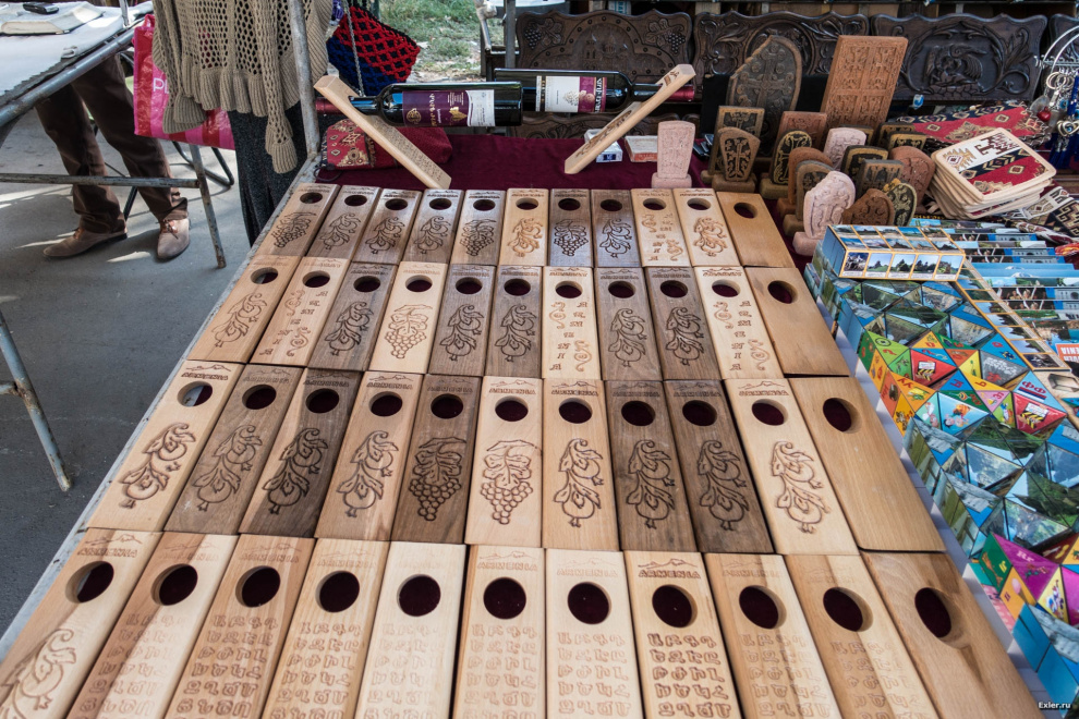 Традиционные армянские подставочки для коньячных бокалов. Во Франции уже давно коньяк пьют из совершенно других бокалов, но что армянам эта Франция, правильно?!! Свои традиции - это свои традиции, наливай, ара! Кстати, знаменитым армянским коньяком на ярмарке также торговали, но только в одной палатке, что странно.