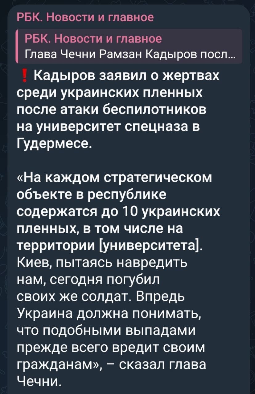 Там еще было смешно в соседних новостях - Кадыров приказал пленных не брать. Ну то есть - рязанский губернатор чего-то там приказал военным. Смешно. Но с этим, конечно же, все другое.