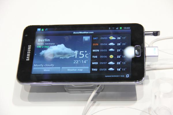 Вот эта штука мне очень и очень понравилась (по крайней мере, пока чисто внешне). Коммуникатор Samsung Galaxy Note с чумовым SUPER AMOLED дисплеем 5,3" 1280х800. Размеры - 146.85 x 82.95 x 9.65 мм, при этом достаточно легкий - 178 граммов.