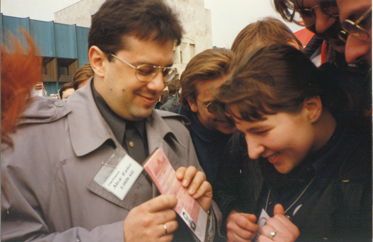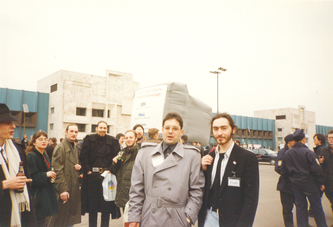 BTW, ссылку на эту статью мне прислал Леша Голосов. Вот он в 1997 году. Справа виднеется Жанет. Слева почти не попал в кадр Леша Толок.