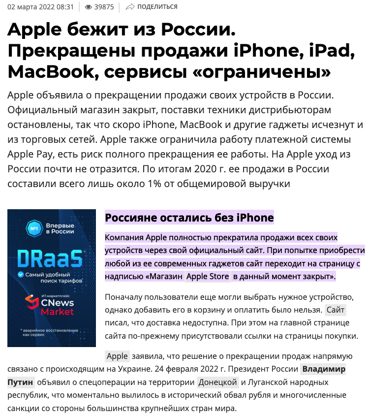 Яблоко ушло. Вот МакДональдс остался. Ушли только магазины, открытые им непосредственно.