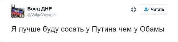 Также давайте предметно, может мы все тут неправильно понимаем, а вы один правильно. Просто чтоб собеседники увидели, насколько вы трезво судите и не включаете ли дурочку. Вот пишет человек - "лучше я буду сосать у путина, чем у обамы". Скажите, по вашему мнению, это пишет житель Гондураса, Ватикана, Японии, Литвы или России? Или проклятая неопределенность. И что именно он собирается сосать, как вы думаете? Палец, леденец, кошелек, подошву, может ложку или соску - скажите прямо, что? И что, по его мнению, он этим сосанием выразит? Угрожает ли он путину или, наоборот, выражает таким образом уважение? Почему он не написал "буду толкать мяч", "буду подметать двор", "принесу ему воды", "помашу ему флажком" - почему он написал "буду сосать"? Расхожее ли это выражение, поймет ли его публика? Зададут ли ему читатели эти вопросы, или оно хорошо поймут всё это, то есть данное выражение в их языке расхожее, устойчивое и привычное?