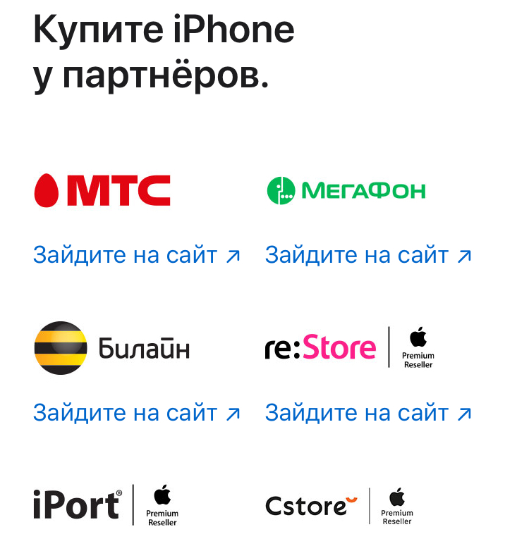 Вы можете купить iPhone у реселлера или оператора сотовой связи.