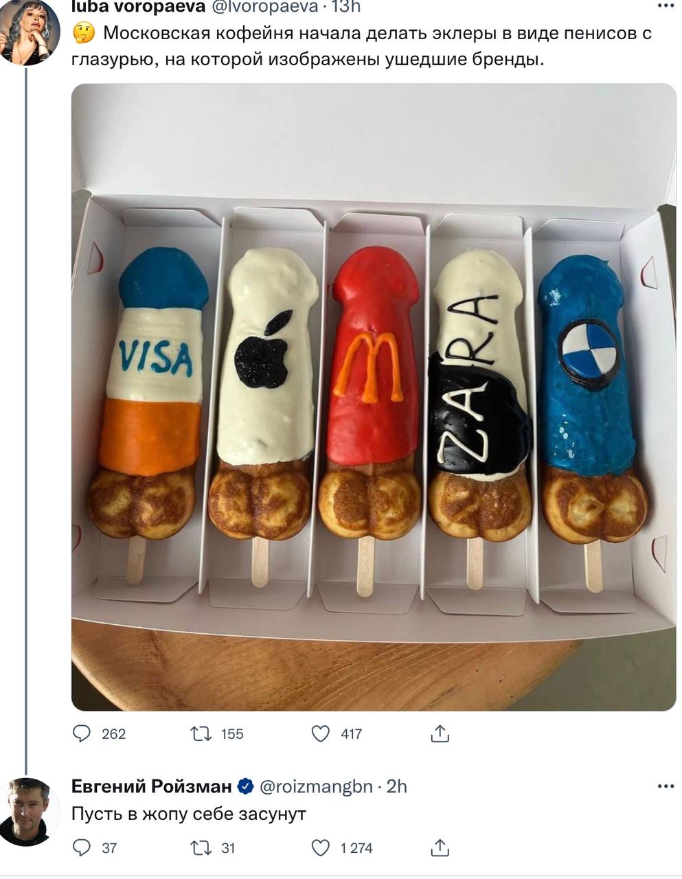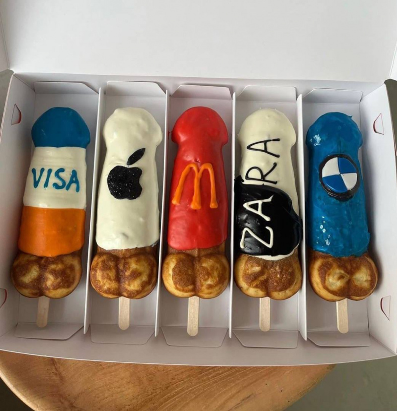 Московская кофейня начала делать эклеры в виде пенисов с глазурью, на которой изображены ушедшие бренды - Via.
