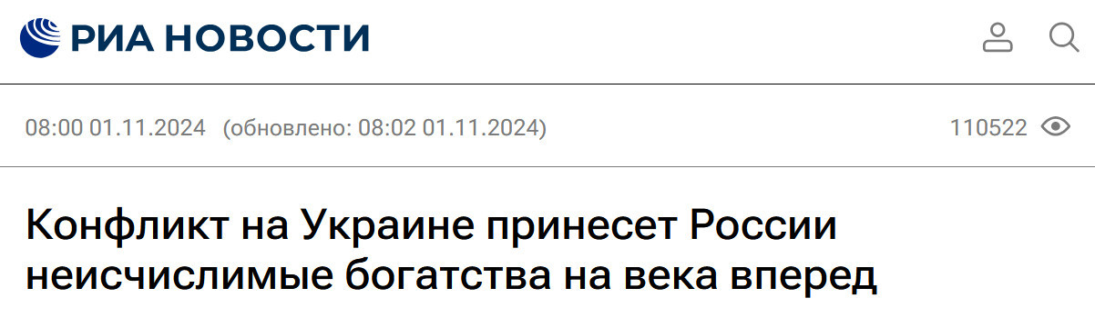 А вы знали, что война с Украиной принесет России неисчислимые богатства на века вперед? Чес-слово, в РИА Новости врать же не будут!