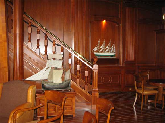 Так что здание совершенно новое и современное. Но туда напихали старушек-смотрительниц и во время экскурсий все время вворачивают Петра Первого - как мантру. Например, показывают зал с бильярдами - и напоминают, что бильярд в Россию завез Петр Первый. Показывают комнату со стенами, выложенными плиткой - и напоминают, что плитку в Россию завез Петр Первый. Показывают курительную - и напоминают, что табак в Россию завез Петр Первый. Показывают "мраморный зал" (отдельный дурдом, потому что никакого мрамора там нет, стены совершенно пошлым образом отделаны искусственным мрамором) - и напоминают, что мрамор в Россию завез Петр Первый. А еще Петр Первый открыл закон всемирного тяготения, нарисовал таблицу Менделеева и расщепил атом. Дурдом на колесах.