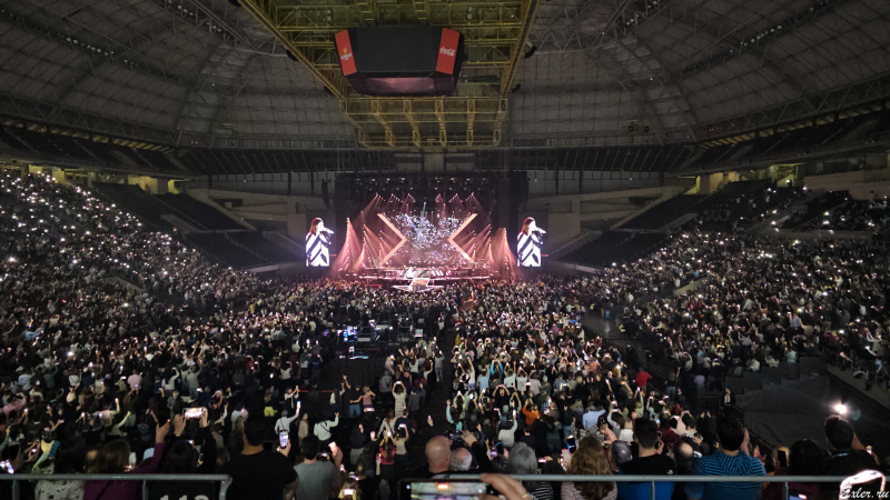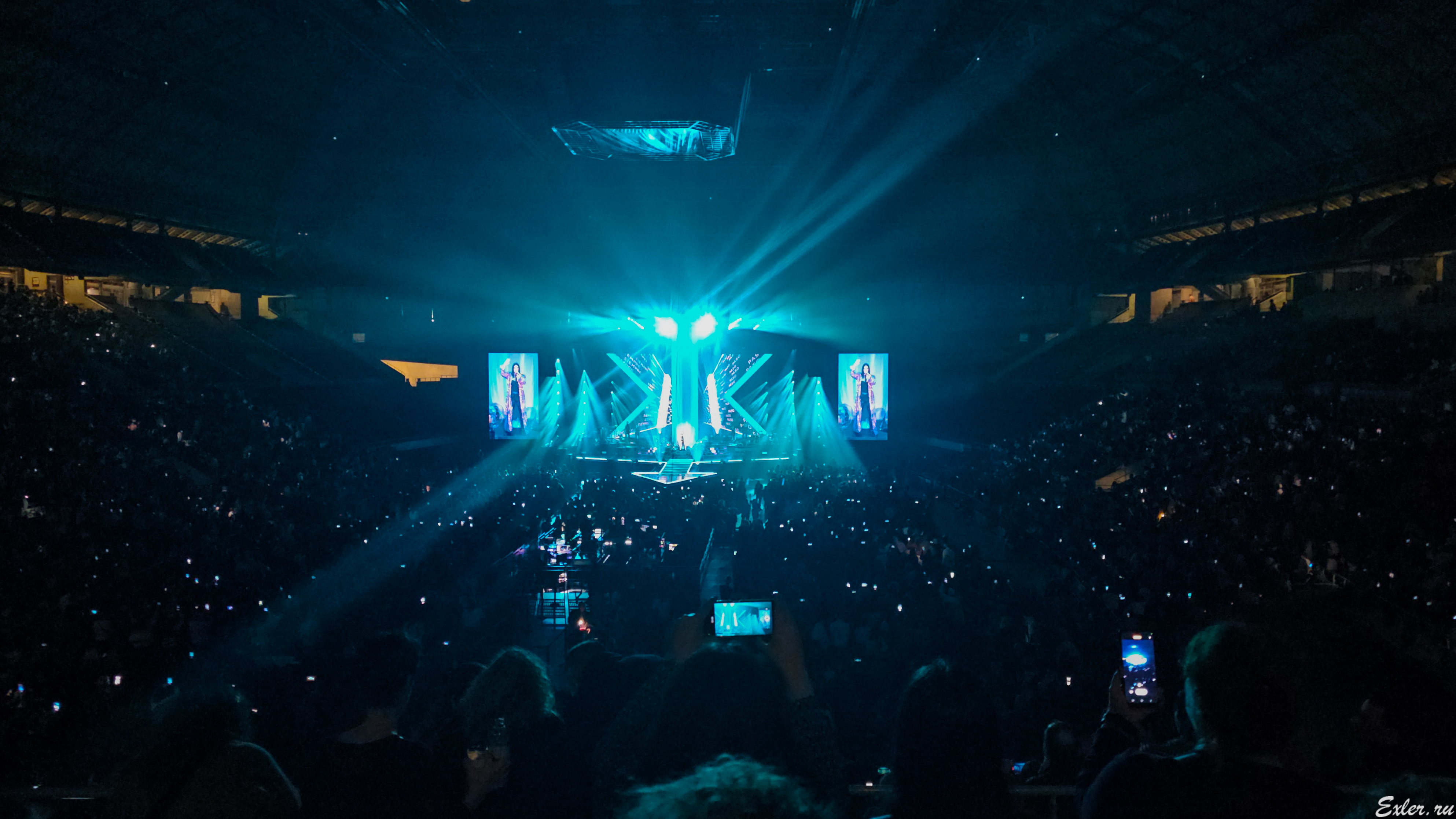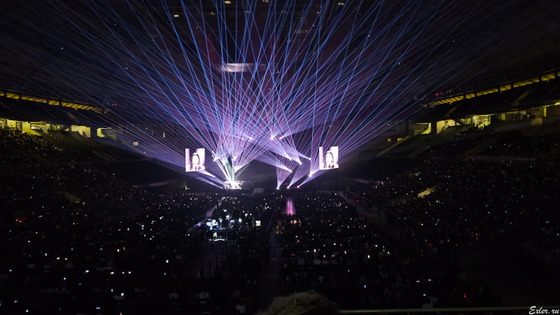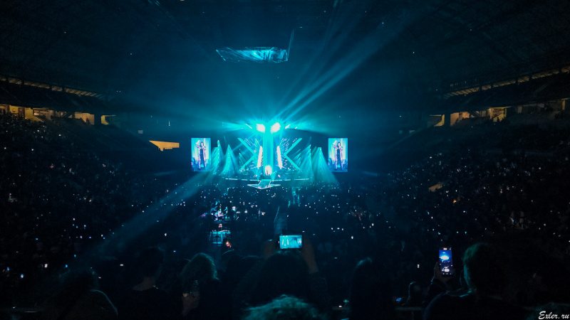 А вот здесь интересно. В зале не включали свет: просто Лаура перед исполнением очередного хита попросила зрителей посветить фонариками телефонов, и на центральном экране оператор показывал, как это для нее выглядит со сцены.