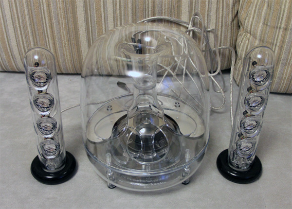 Интернет-магазин "Юлмарт" прислал офигенную штуку - вот такие психоделические колонки с сабвуфером. Прямо что-то космическое. Я даже не сразу понял, как на колонке звук регулируется. Оказывается, там просто две железные пластины с "+" и "-" - к ним нужно прикасаться пальцем. Но звук, кстати, классный, я их уже установил к компьютеру. ("И ничего, что они похожи на самогонный аппарат, - заметил кот Бублик. - Зато играют отлично.")