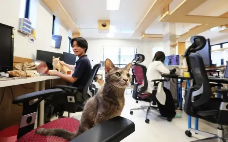 В японской IT-компании официально приняты в штат 11 кошек, чья «работа» заключается в том, чтобы быть милыми, дремать у окна, помогать (или мешать) своим коллегам-людям, а также заниматься другими кошачьими делами, включая мяуканье и урчание моторчиком, когда их гладят.