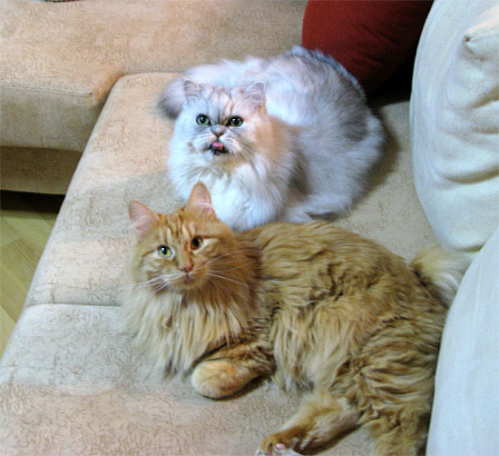 Получаю массу писем с вопросами на тему - куда делись кошаки. Они никуда не делись. Они здесь. Вот, например, удивляются тому, что я вовремя пришел домой...