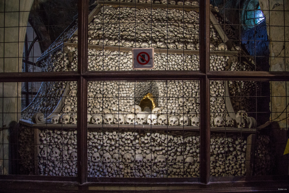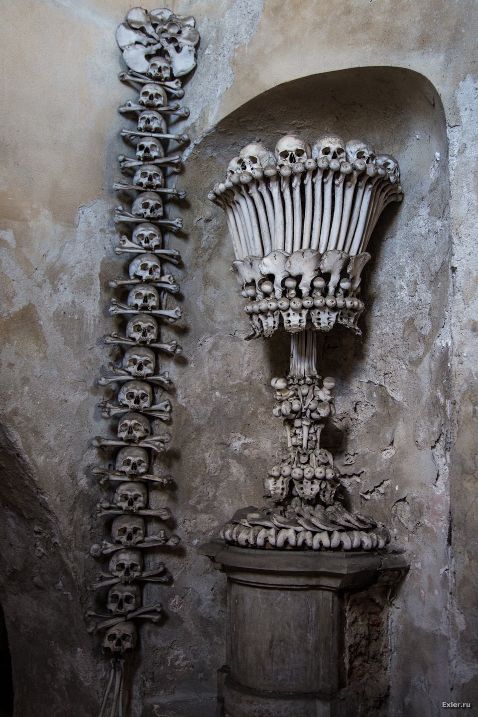 Рассказывают, что складированием костей занимался полуслепой монах, которому не было чуждо чувство прекрасного. Просто так раскладывать кости ему было неинтересно, и он стал складывать из костей и черепов всякие сооружения - во славу Господа, разумеется.