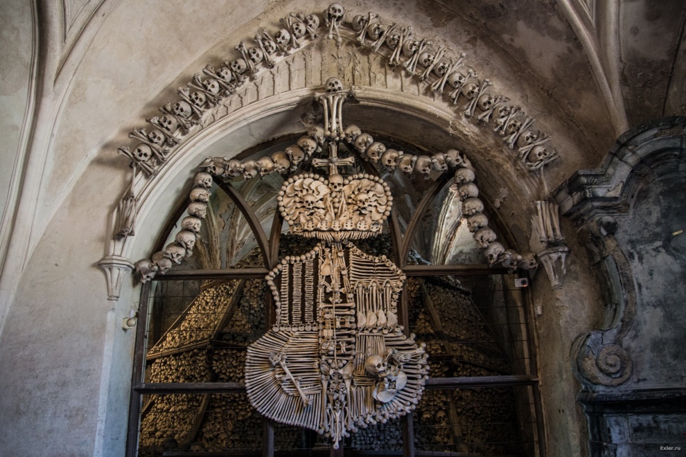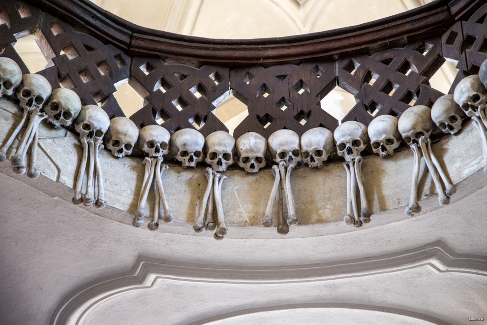 Мастер отбелил кости и начал украшать ими выстроенную большую часовню. В результате - получился памятник культуры, созданный из останков нескольких десятков тысяч человек. И этот памятник привлекает толпы туристов, которые приходят сюда или подумать о бренности всего сущего, или насладиться красивыми видами огромной люстры, дарохранительницы или герба Шварценбергов - все это сделано из костей.