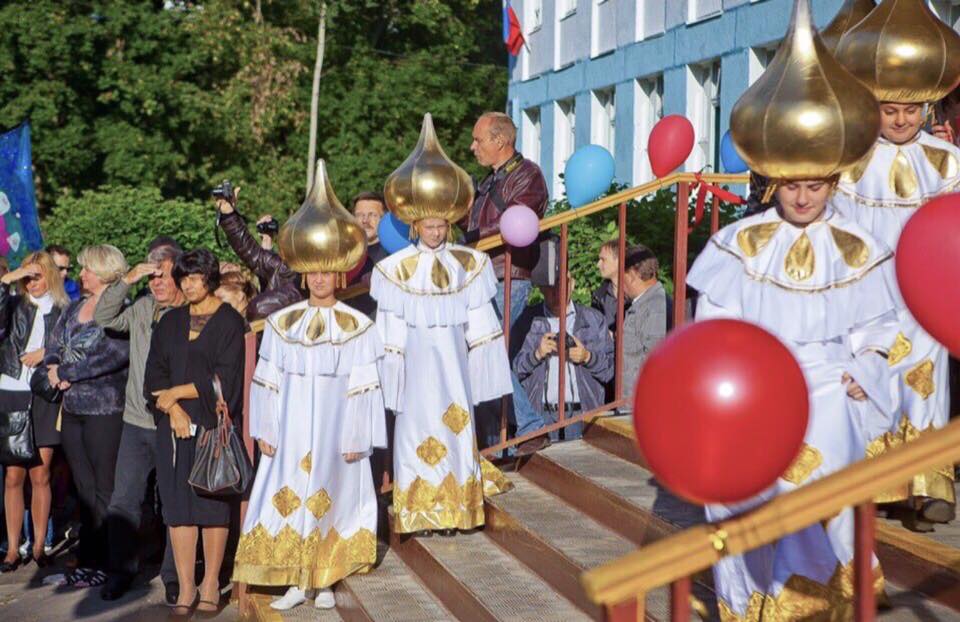 Однако в городе Екатеринбурге нашли чем ответить потерянным кощуникам. Вы посмотрите, как скрепно и благолепно - фото отсюда. Сразу видно - детишки хорошо воспитаны.
