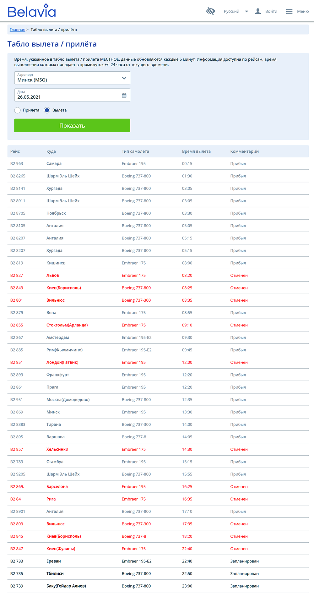 Он-лайн табло минского аэропорта недавно легло, кстати.