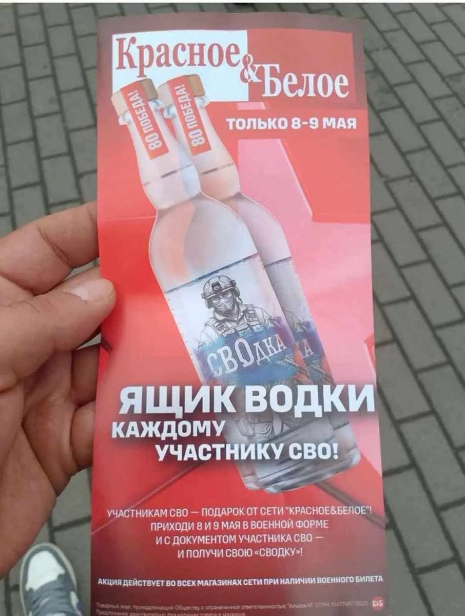 я бы сделал так - мелким шрифтом указал на ограничения акции, участник СВО приходит - говоришь ему Слава У...я имею ввиду водка по акции закончилась, но есть другая для ветеранов - купи 4 бутылки - пятая бесплатно, вон уже и по этой почти всё разобрали... полтора ящика осталось...вы таки реально думаете что он от меня без водки уйдет если за ней пришел?
