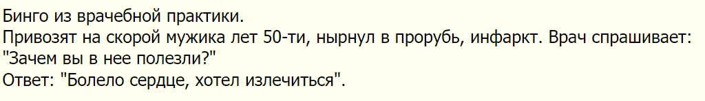 А что, сказал врач, дали по башке, а потом у него инфаркт...