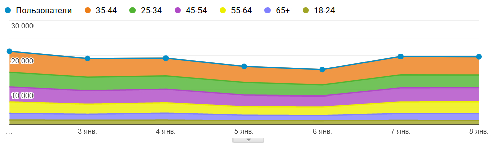 В Гугл Аналитике похожая картина, прикладываю.