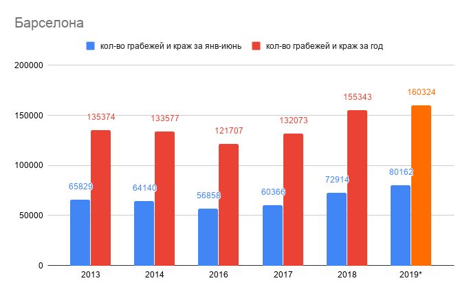 А есть информация об увеличении потока туристов в Барселону за эти же годы? Просто данные на графике от remeznik`а показывают рост на 18-20% числа преступлений за 6 лет, а туристов и "беженцев" за эти годы явно стало больше, чем на 20%. Так что возможно (возможно) дело не столько в Аглае и/или полиции?