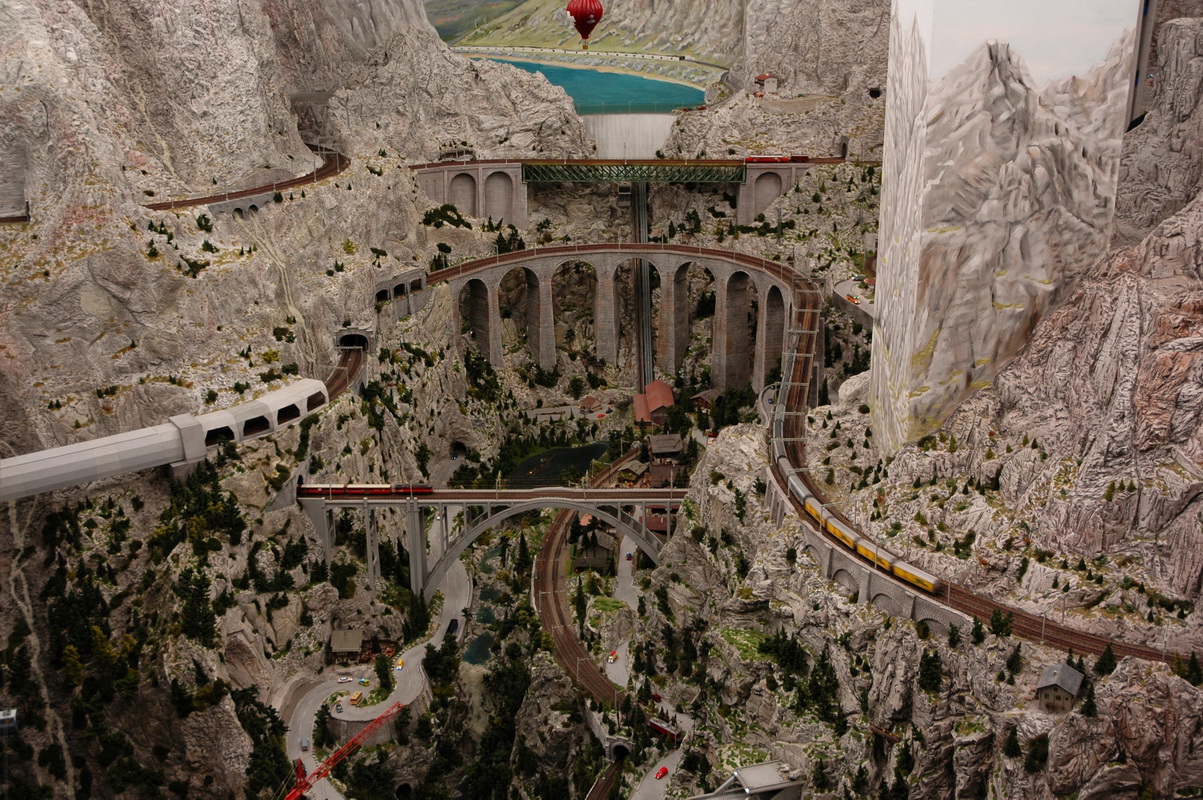 Продолжаем разговор о крупнейшем в мире макете с железными дорогами - вот первый выпуск. В прошлый раз я не написал, а это не совсем очевидно, что все поезда на этой огромной территории находятся в непрерывном движении. 700 составов носятся туда-сюда, переходят на другие пути, стоят перед семафорами и так далее. Управляются составы вот из этого центра управления, в который могут зайти любые желающие и полюбопытствовать - там очень интересно.