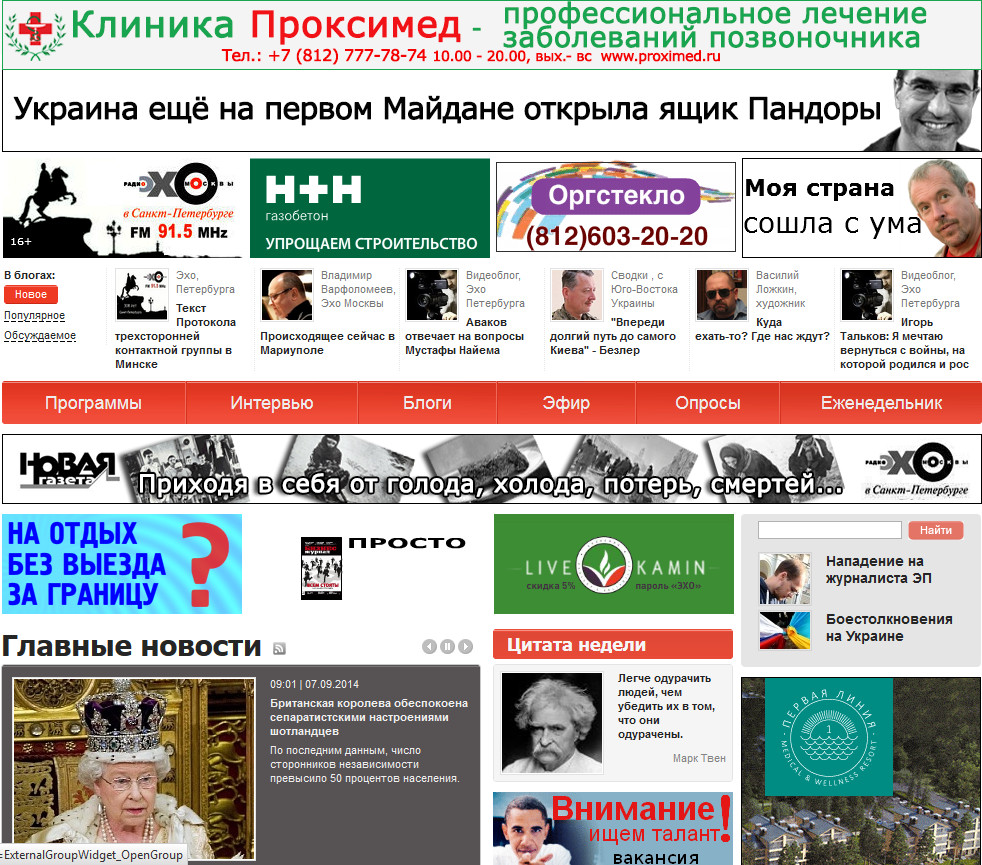 Upd: Все выяснилось. Пишут, что у сайта был типа как рейдерский захват. Так что эти баннеры захватчики и налепили, к "Эху-СПБ" претензий нет. Ссылку убираю, чтобы рейдеров не рекламировать.