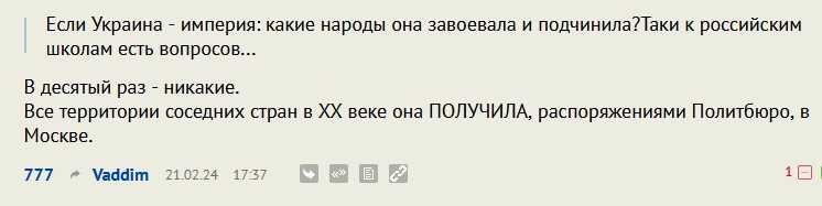 Война в Украине отвратительна и ужасна, но ужасней всего то, что есть такие вот идеологические помощники Путина. Не за бабло даже.