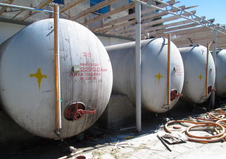Вот в таких цистернах это все хранилось и из них разливалось. Какая интересная живность в них почти наверняка проживает - можете себе представить.