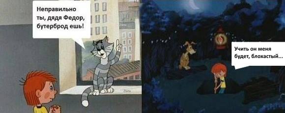 - Неправильно ты, Дядя Федор, бутерброд ешь. Ты его колбасой кверху держишь, а надо валить нахрен из этой страны! (с)