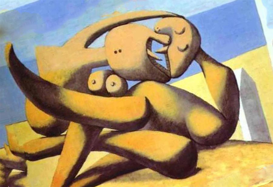 Теперь становится понятно, отчего художник так явно пренебрегает достоверностью. Ему безразлично количество пальцев на конечностях, да и вообще их наличие. Своим полотном он передаёт настроение. Чёткими кривыми линиями он заставляет нас задуматься: что такое есть женщина? Что у неё где? И вообще – настолько ли прекрасны женщины, которых мы порой слепо обожаем и превозносим?..