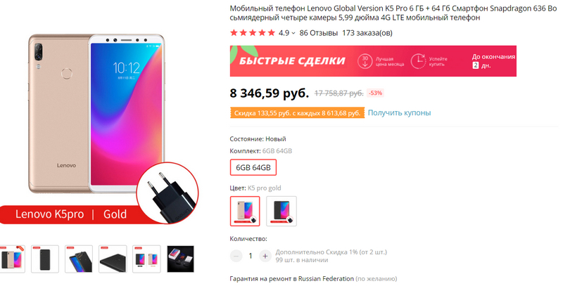 Вопрос следующий. Прислали мне смартфон Lenovo K5 Pro. Не из Aliexpress, точно помню. У смартфона очень приличные характеристики для тогдашней цены - было что-то там под €200. Сейчас на Ali он стоит почти в два раза дешевле - €119, причем за такие деньги характеристики довольно крутые. 6/64 ГБ, Snapdragon 636, аккумулятор 4050 Мач - в общем, все очень и очень интересно.