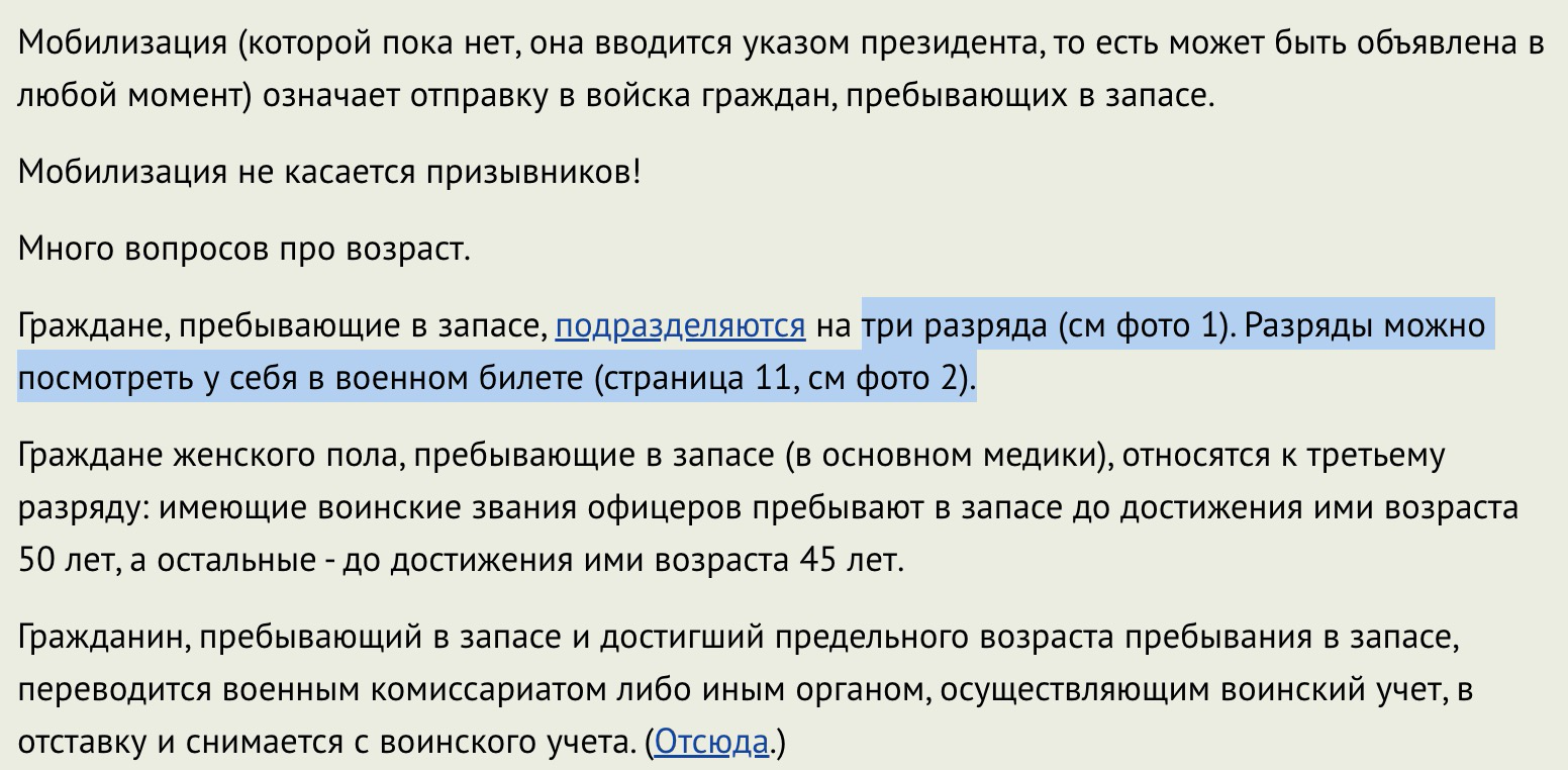 А у меня категория "змей" (или "гад") - в какую очередь меня мобилизуют?