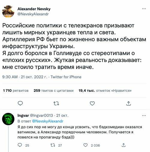 Вот когда рашка денацифицируется, демилитаризируется, выплатит ущерб и будут видны изменения в обществе - тогда и поговорим. А пока - нет и никогда небыло. Нечего нести рашистскую пропаганду во внешний мир.