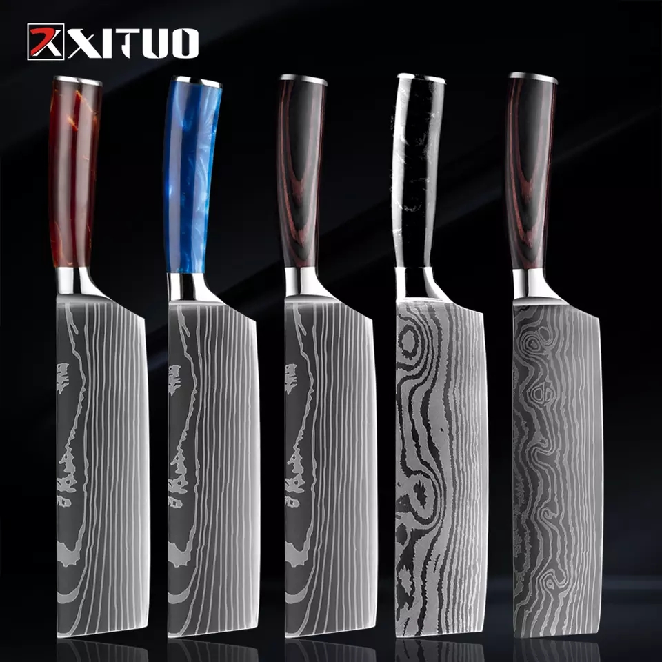 Не знаю кому как, у меня два шефа - разных по весу, один универсальный, овощной побольше и поменьше и еще Сантоку. Меньше всего пользую Сантоку и филировочники. Тяжелый шеф - вот это просто счастье. Сам падает, сам скользит... второй более легкий, там усилий больше.