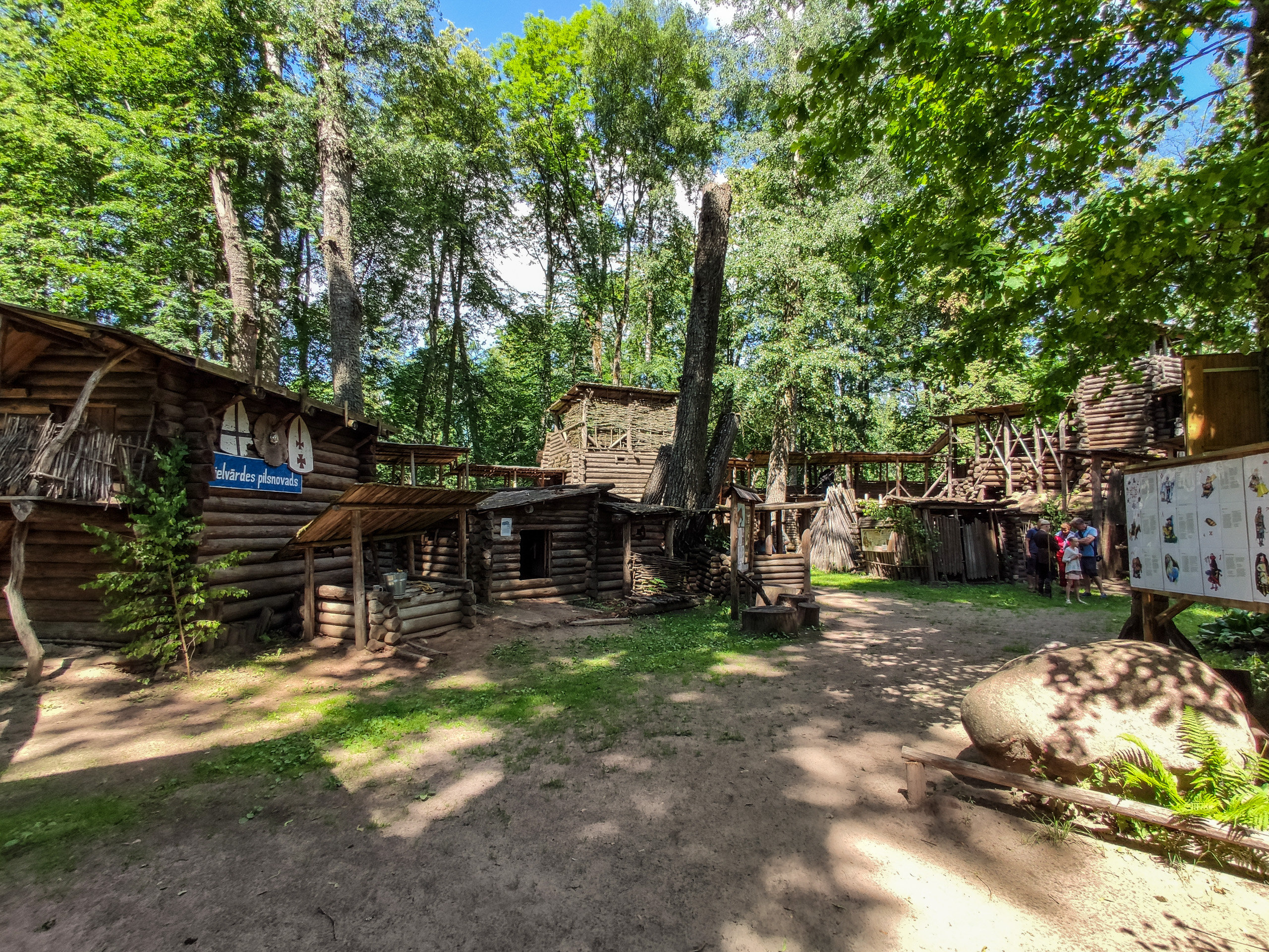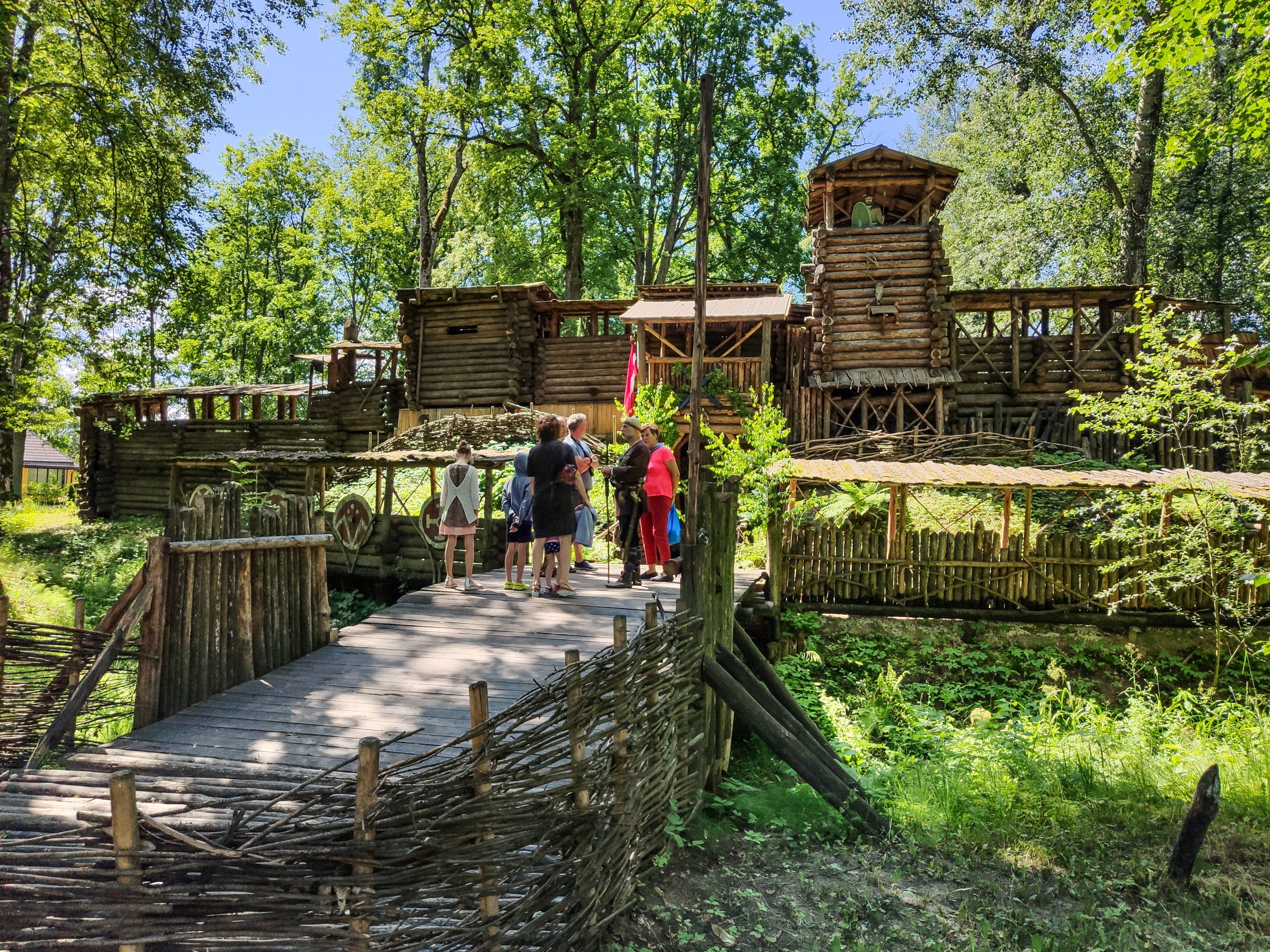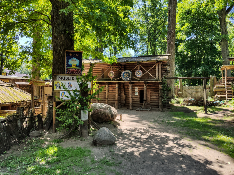 Это реконструкция деревянного замка древних латышей XII века, созданная под руководством художника Агриса Лиепиньша. Творческая группа решила показать, как могли бы выглядеть хоромы знатного вождя Лиелвардского края Улдевена, одного из героев знаменитой «Хроники Ливонии».