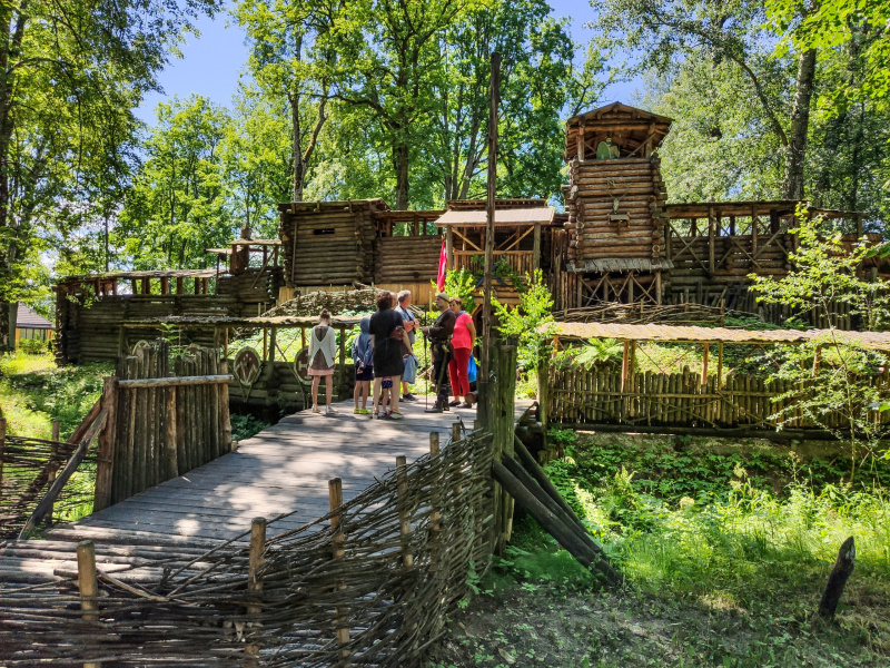Деревянная крепость, окруженная рвом, внутри которой - самые разнообразные строения, имитирующие быт тех времен.